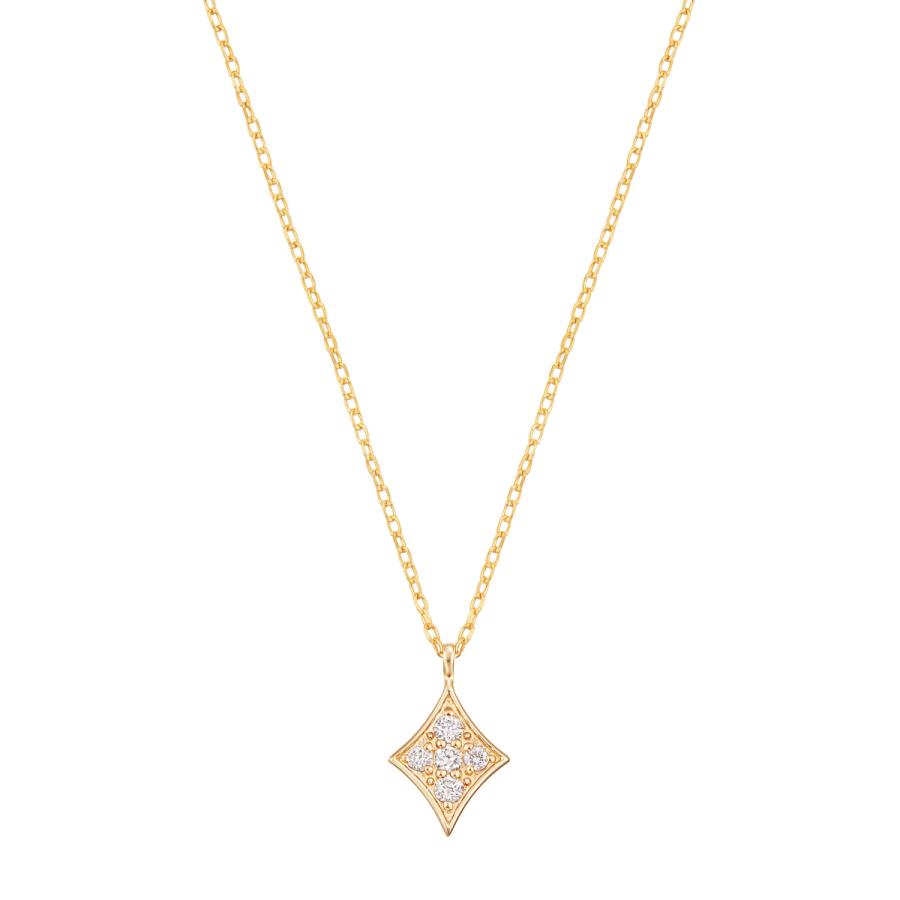 ダイヤモンドのクールな輝きを、スタイリッシュなデザインが引き立たせるネックレス。イエローゴールドの華